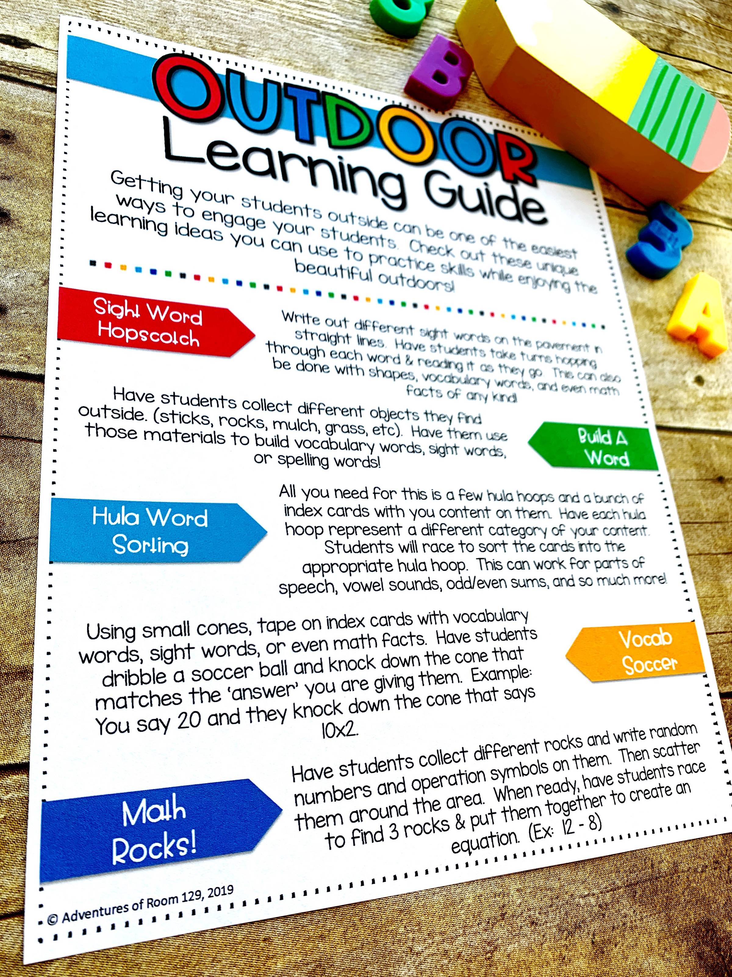 Give your students some new and fun ideas on how to learn, even while outside! Grab your FREE guide below!